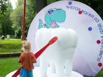 Бренд SPLAT представлял линейку детских зубных паст Juicy Lab. Мы проводили ставшие уже традиционными мастер-классы по пастоварению и организовали фотозону, которая пользовалась популярностью среди маленьких гостей. С помощью большой зубной щетки и фигуры зуба дети с удовольствием показывали приглашенному стоматологу правильную технику чистки зубов и получали за это полезные подарки от Juicy Lab.