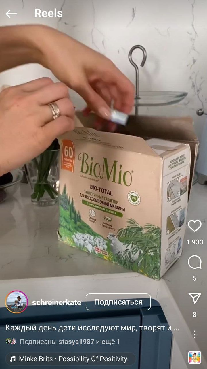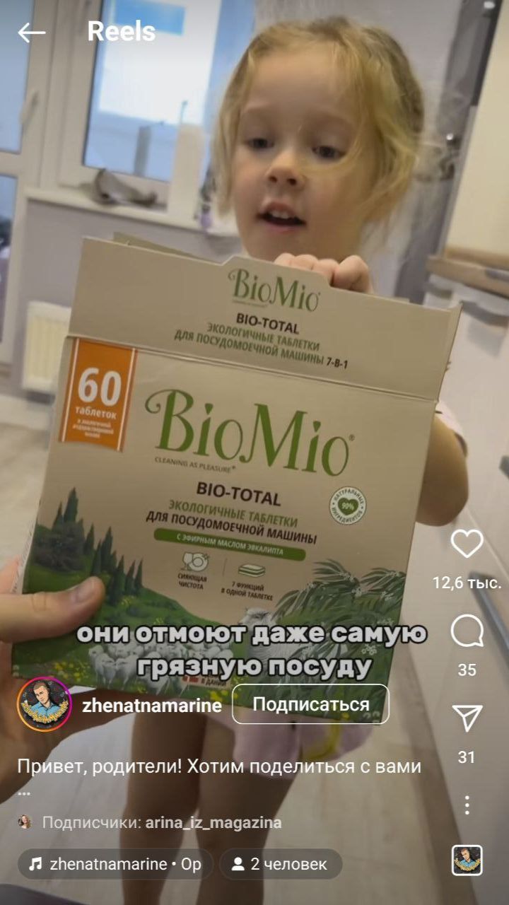 BioMio. Лидеры мнений показали в своих соцсетях, как экологичные продукты бренда помогают им в уходе за домом и детьми.