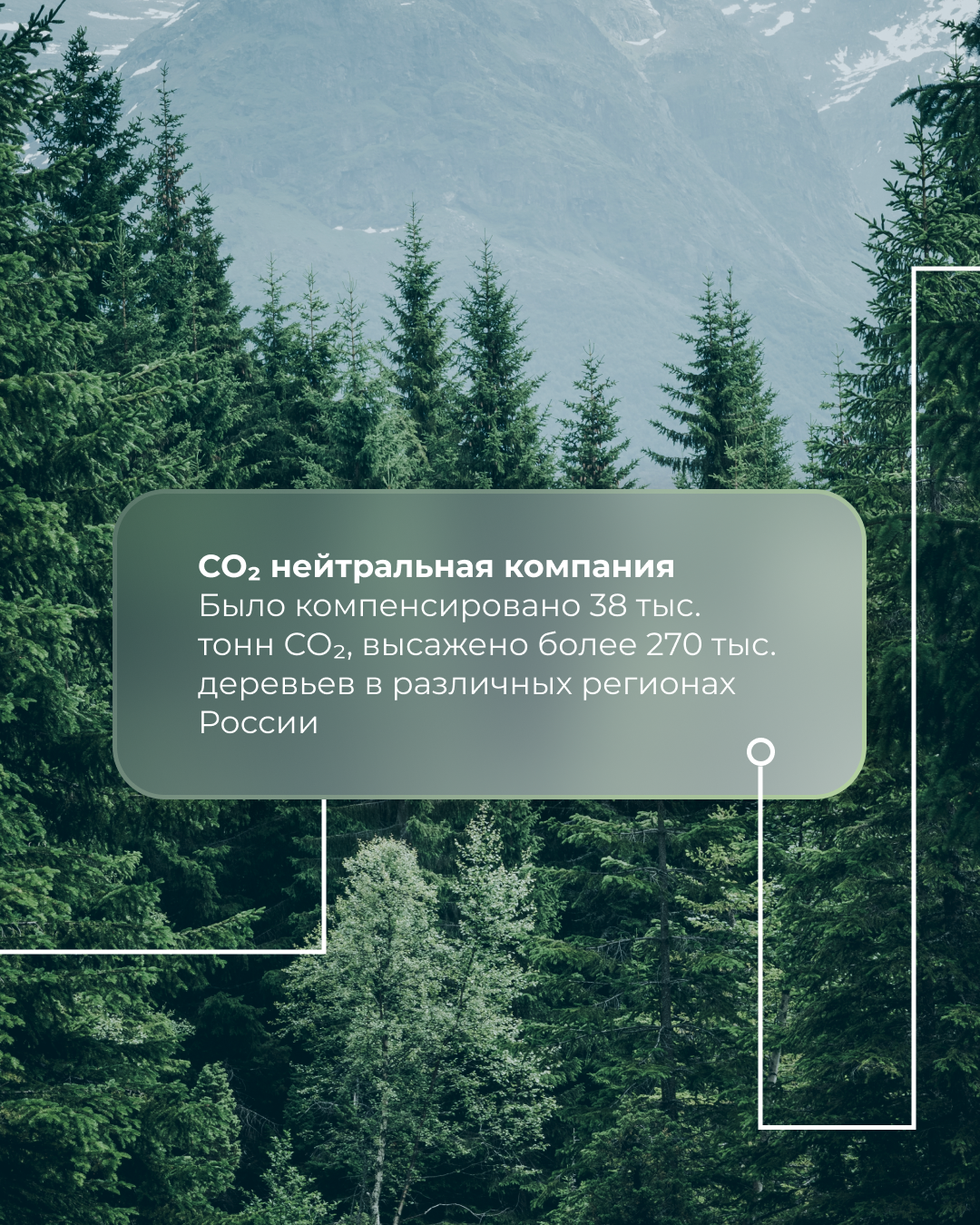 Компенсируем выбросы парниковых газов. Всего мы возместили 38 тыс. тонн СО2, высажено более 270 тыс. деревьев.