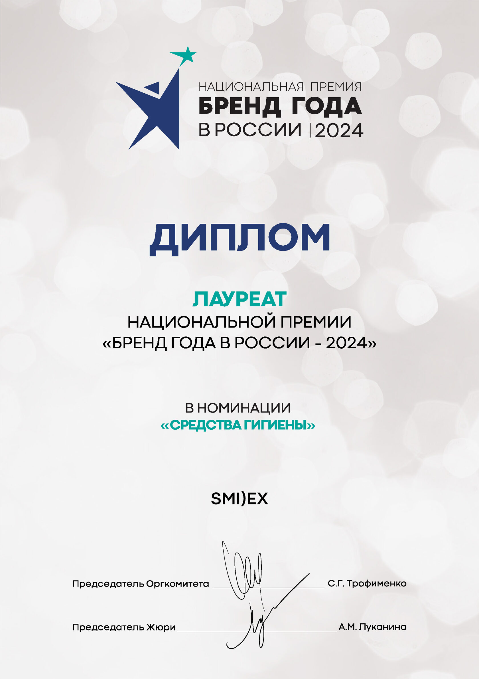 На мероприятии были объявлены и награждены победители премии, которые определились по результатам голосования жюри. Наш бренд для «зумеров» SMI)EX стал лауреатом в номинации «Средства гигиены» и был удостоен заветной статуэткой и дипломом.